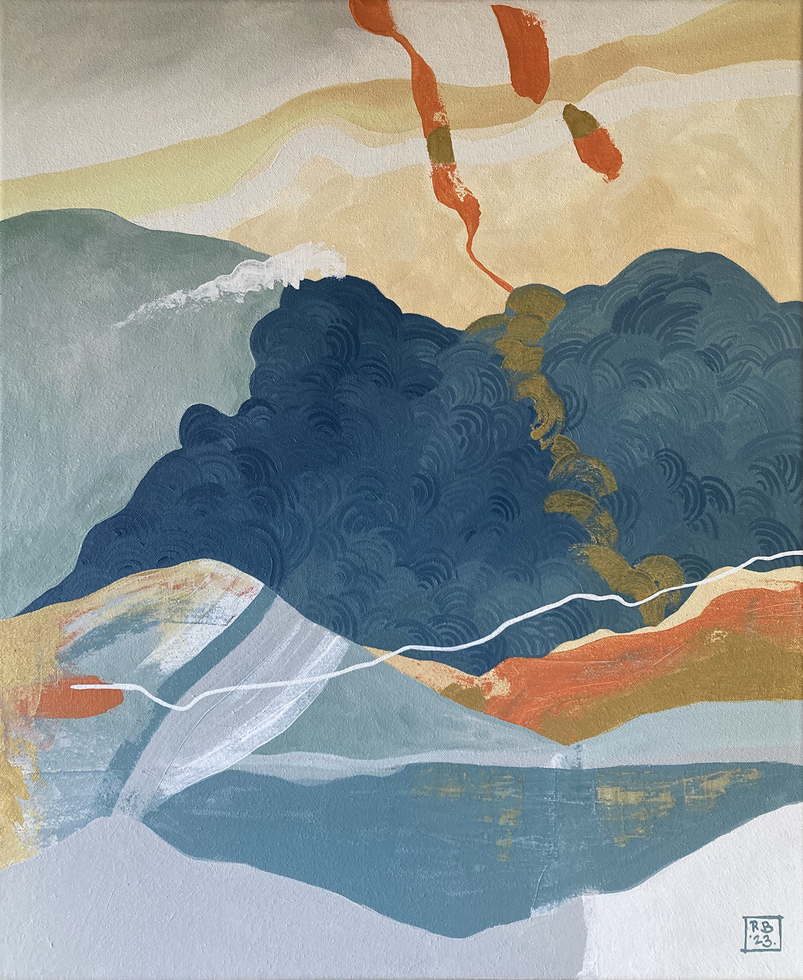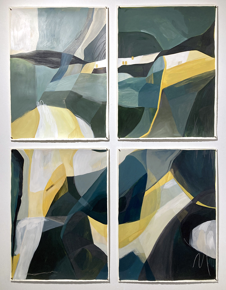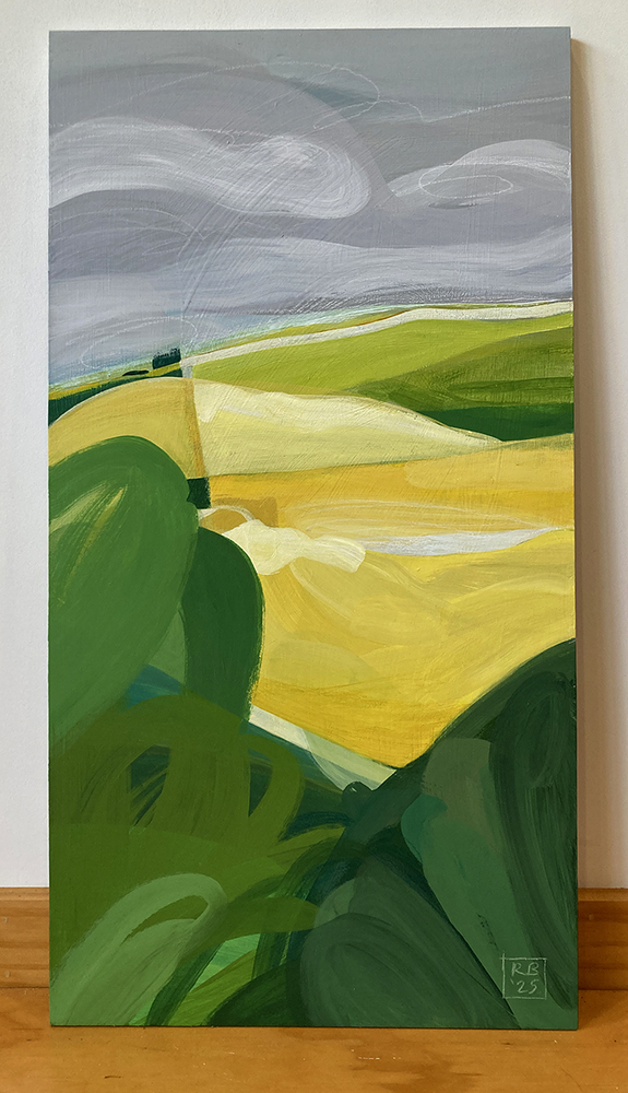 In the studio, I allow the work to evolve as I explore the ways in which landforms interact with each other and I endeavour to capture the intangible in paint.