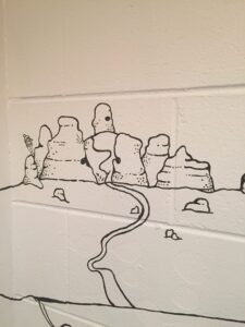 I’m really stoked with how this piece has turned out. I decided that an appropriate approach for this project was to create the entire piece with key elements designed as the first step, followed by an organic ‘fill the rest in’ approach, taking inspiration from the crew at Atlas about the subject matter and what they’d love to see up on the walls. That’s how the the Beaver chugging maple syrup and Godzilla became part of the piece.