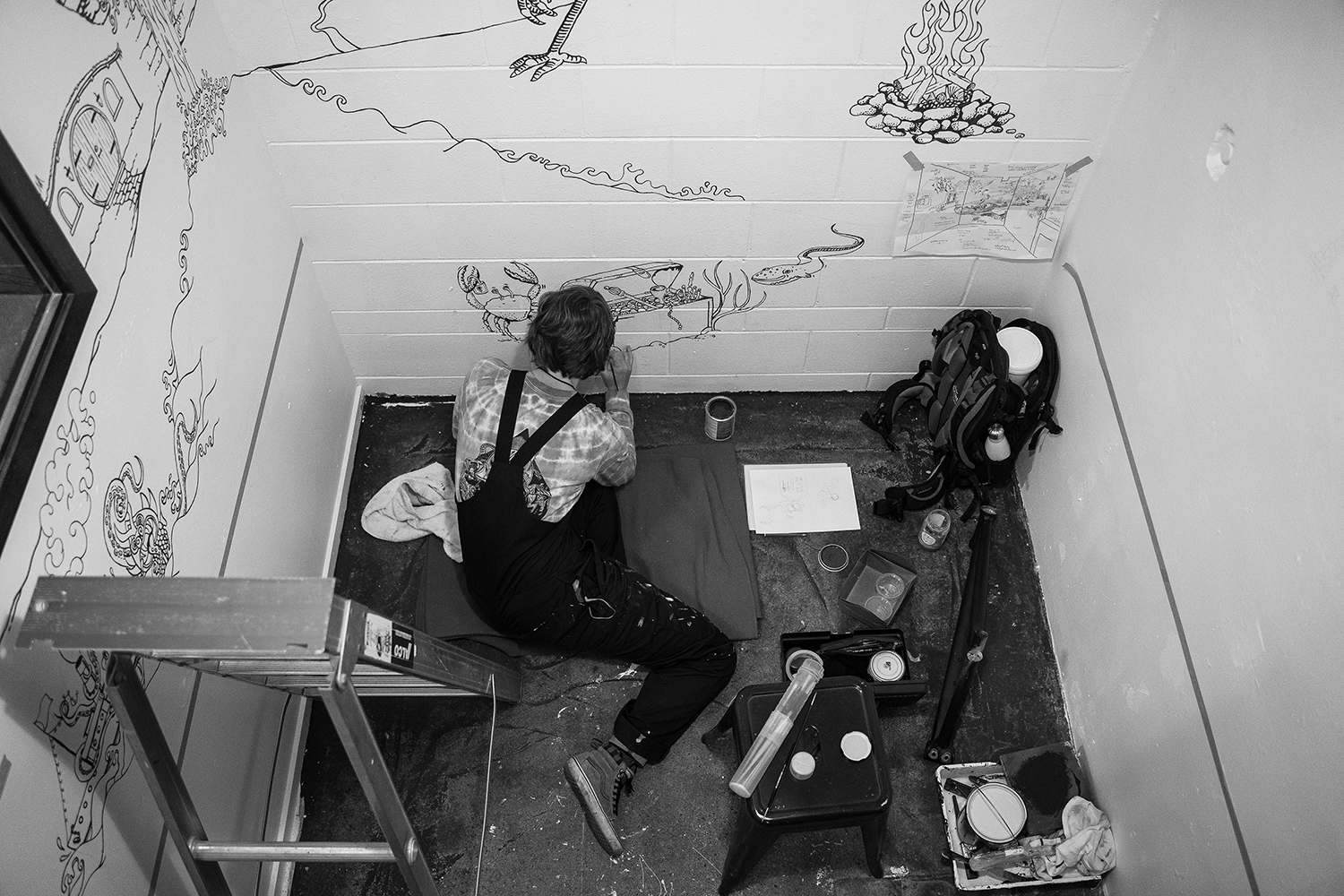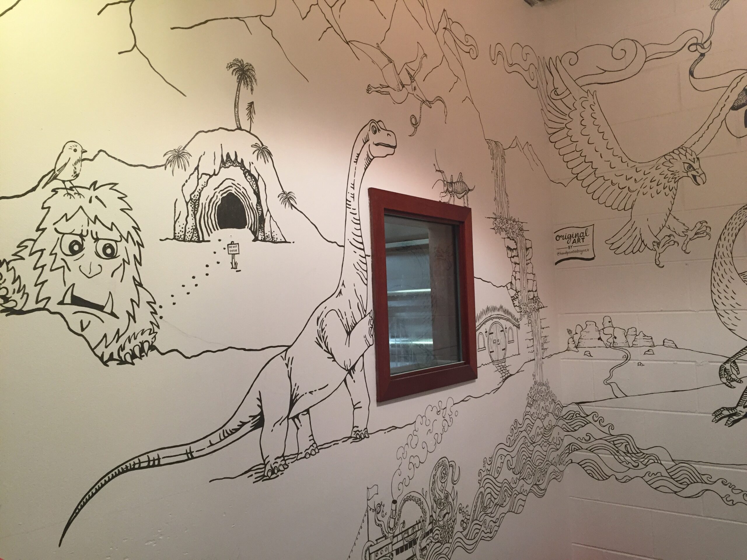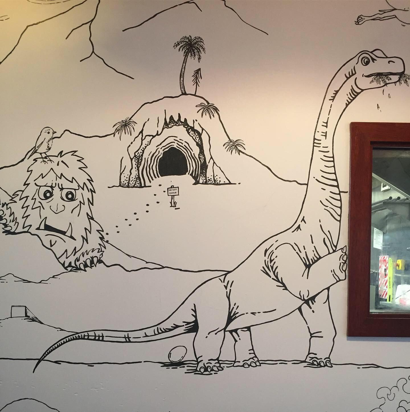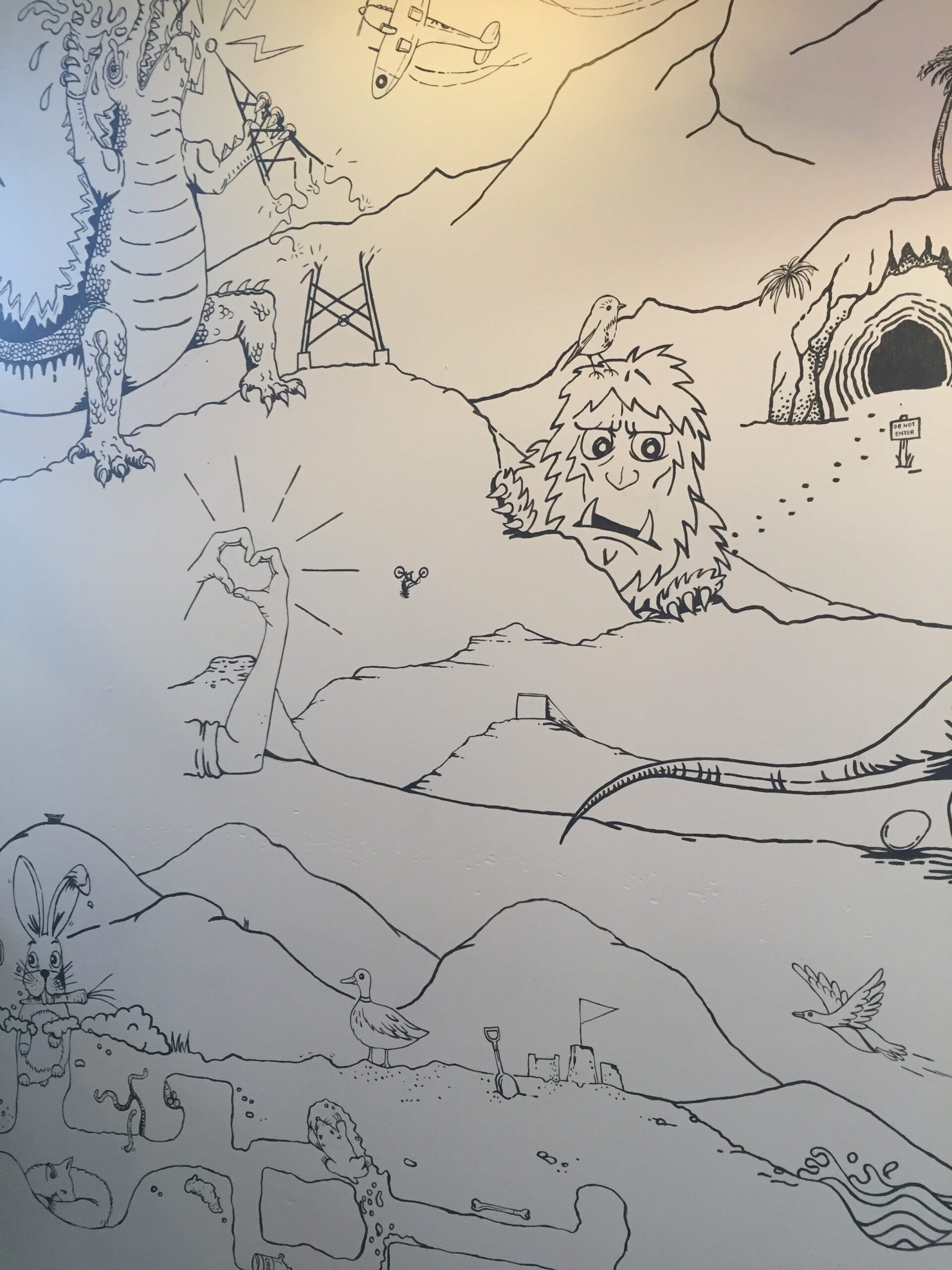 I’m really stoked with how this piece has turned out. I decided that an appropriate approach for this project was to create the entire piece with key elements designed as the first step, followed by an organic ‘fill the rest in’ approach, taking inspiration from the crew at Atlas about the subject matter and what they’d love to see up on the walls. That’s how the the Beaver chugging maple syrup and Godzilla became part of the piece.