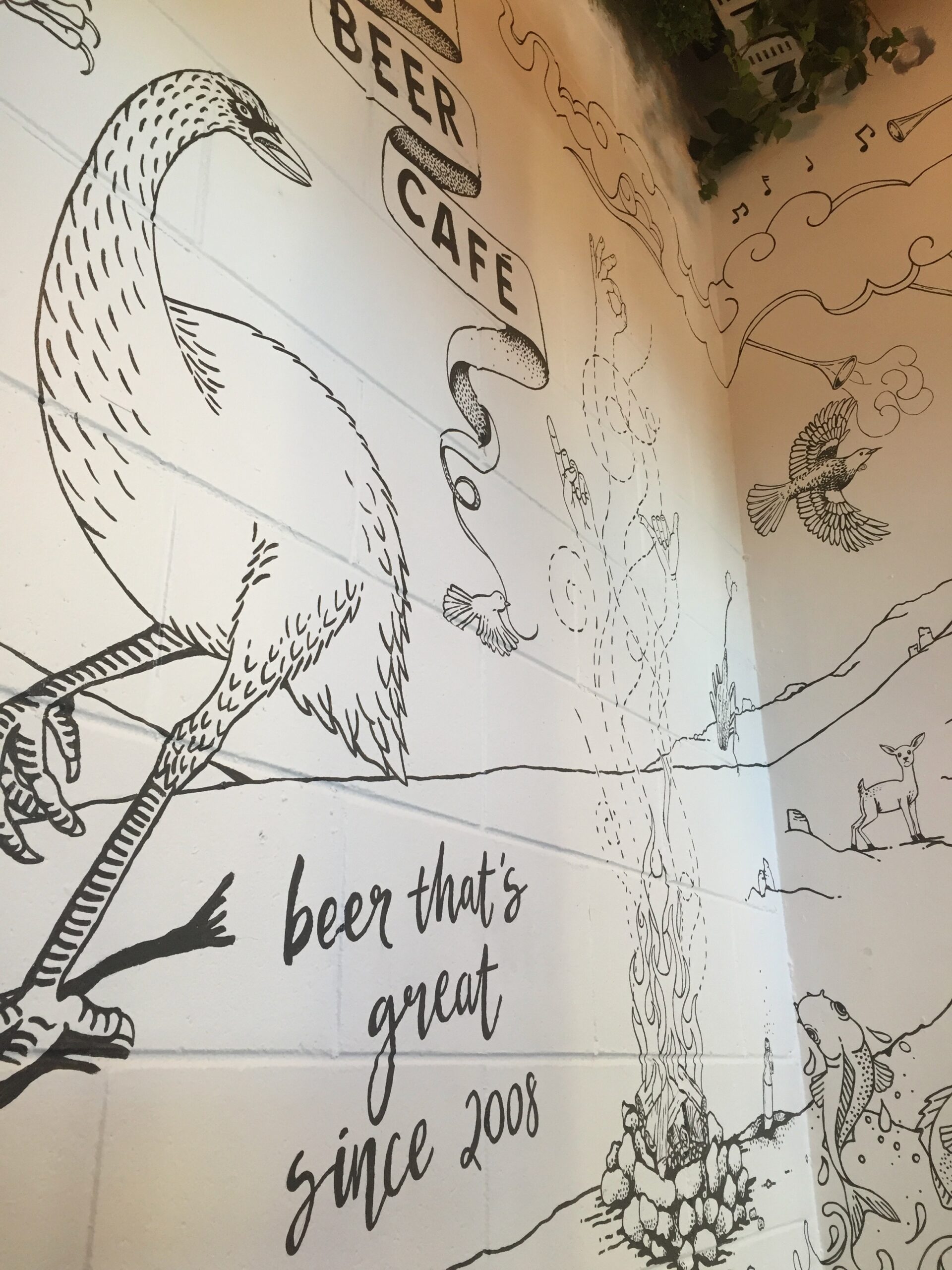 This project was a very special one – designed and created for the corner of a well-loved local craft beer bar. Inspired by all things New Zealand, featuring fantastic and majestical creatures.