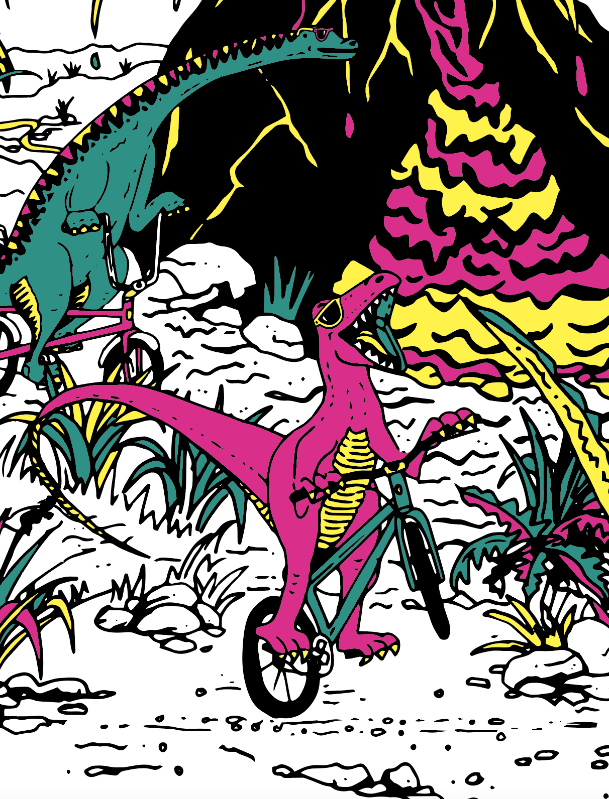 This was a super fun project and totally in my wheelhouse. Dinosaurs riding bikes? Um, yes please!